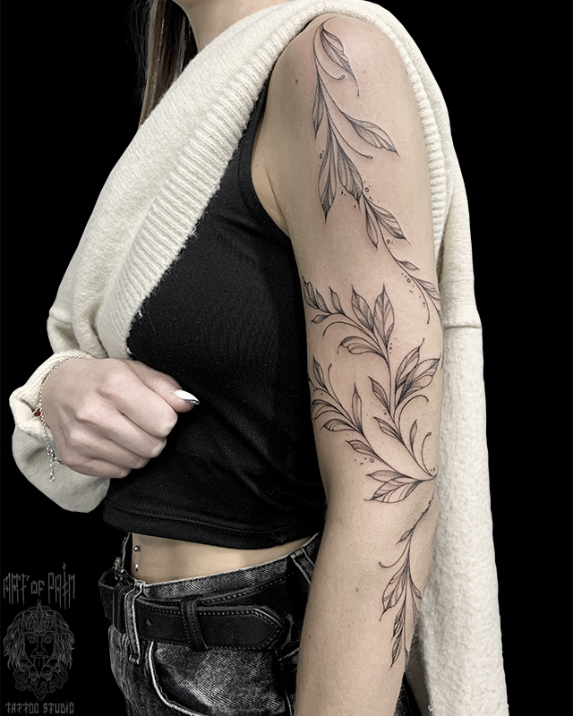 Татуировка женская графика на руке растение (вид сбоку) 7095