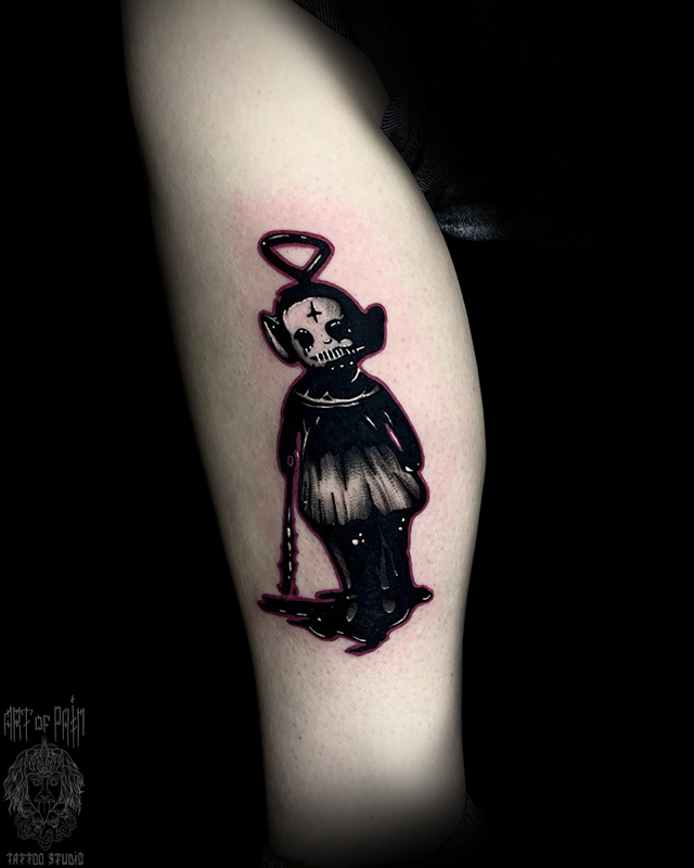 Татуировка женская хоррор на голени телепузик (Кирилл Плотников) 7122