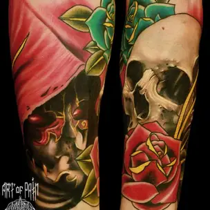 Татуировка женская нью скул на плече роза и ящерица (Анастасия Родина) 7200