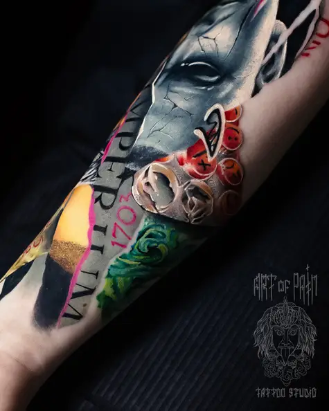 Татуировка женская реализм на предплечье абстракция портрет и смайлы (Дмитрий Шейб) 7209