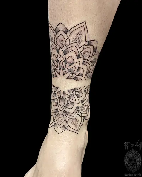 Татуировка женская орнаментал на щиколотке мандала (вид спереди) (Николай Орф) 7231