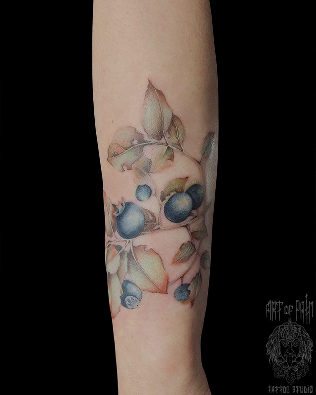 Татуировка женская реализм на предплечье ягоды голубики (Анастасия Родина) 7234