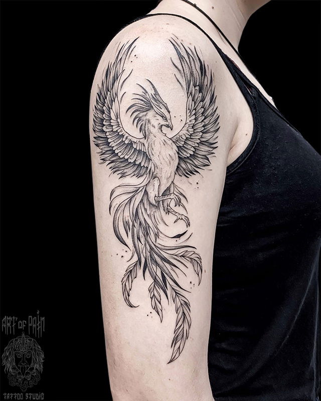 Татуировка женская графика на плече феникс (Мария Котова) 7243