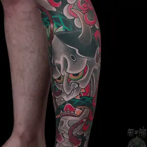 Татуировка женская графика на голени аниме 7360