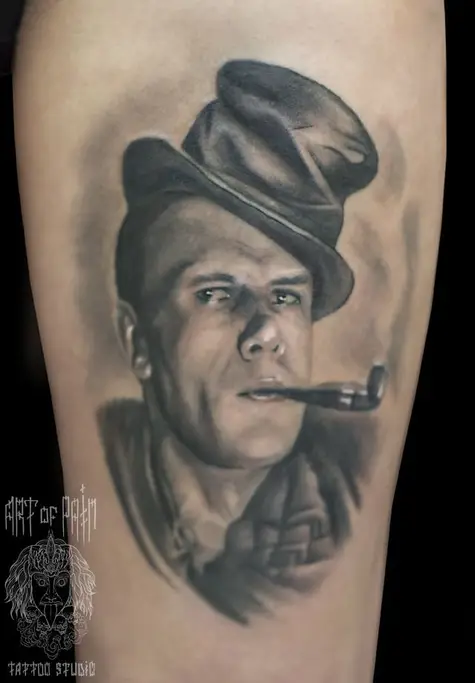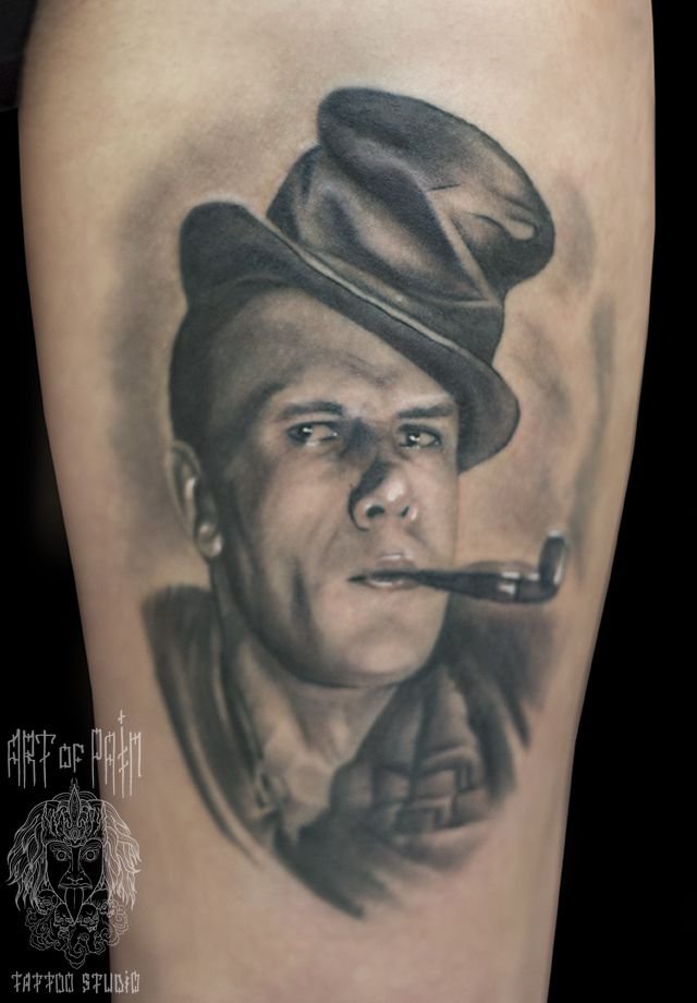 Татуировка женская реализм на ноге портрет 739