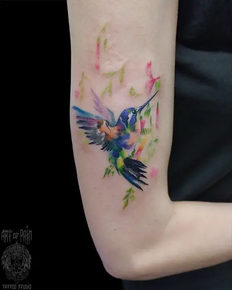 Татуировка женская акварель на плече колибри (Анастасия Родина) 7413