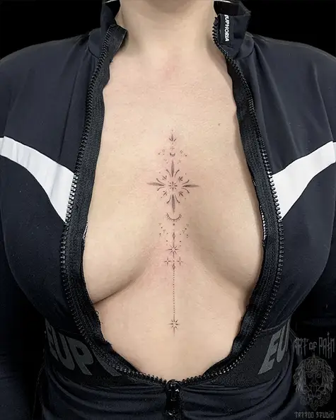 Татуировка женская графика на груди вертикальный узор 7453