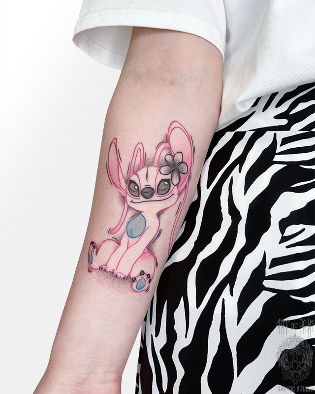 Татуировка женская графика на предплечье Ангел 7470