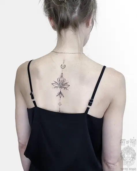 Татуировка женская графика на спине узор и лунница 7473