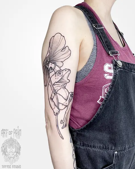 Татуировка женская графика на плече лягушка 7476