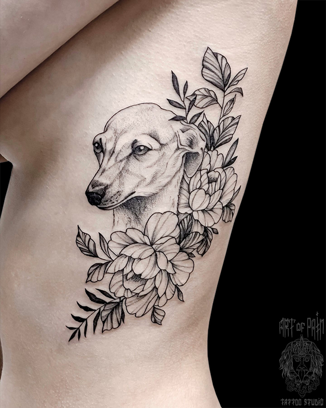Татуировка женская графика на боку собака (Мария Котова) 7486