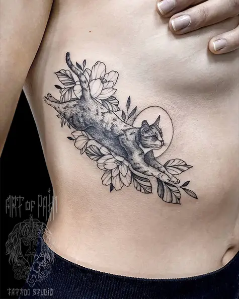 Татуировка женская графика на боку кот (Мария Котова) 7487