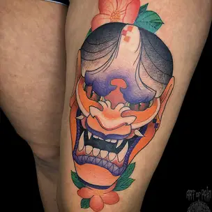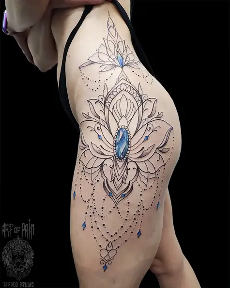 Татуировка женская графика на бедре узор и голубой камень (Анастасия Родина) 7488