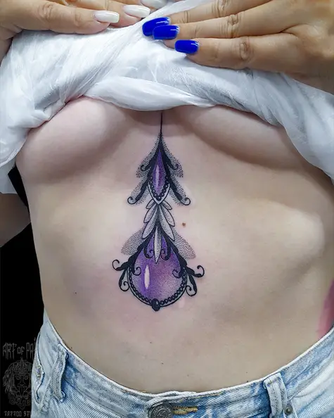 Татуировка женская графика на животе узор с камешком (Николай Орф) 7489
