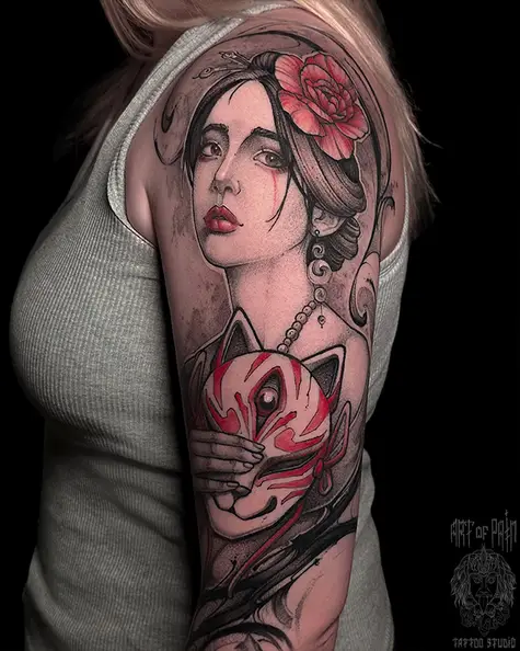 Татуировка женская графика и не-отрад на плече девушка (Денис Марченко) 7502