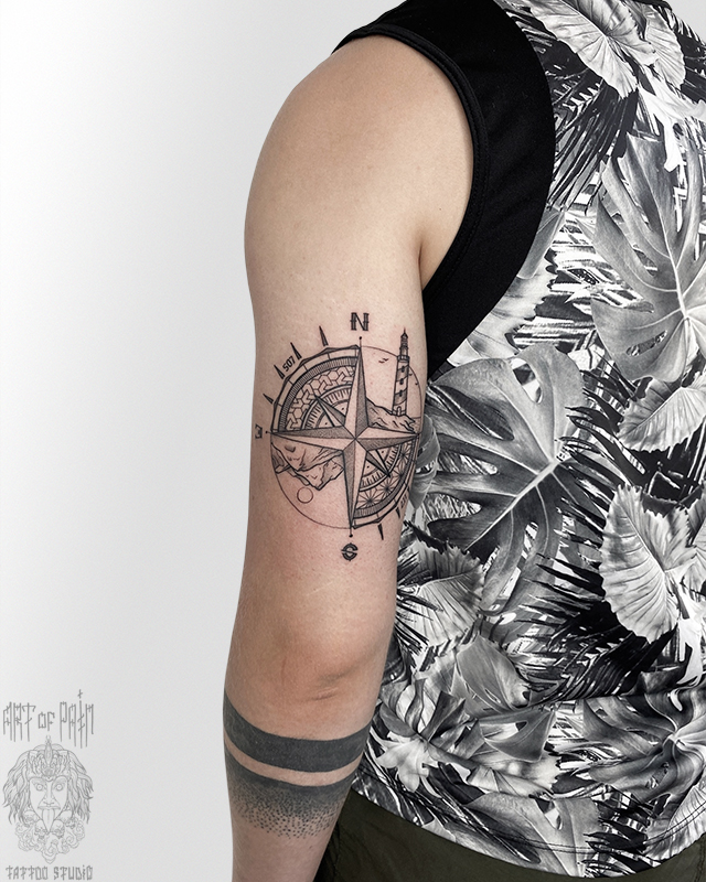 Татуировка женская графика на руке компас 7512