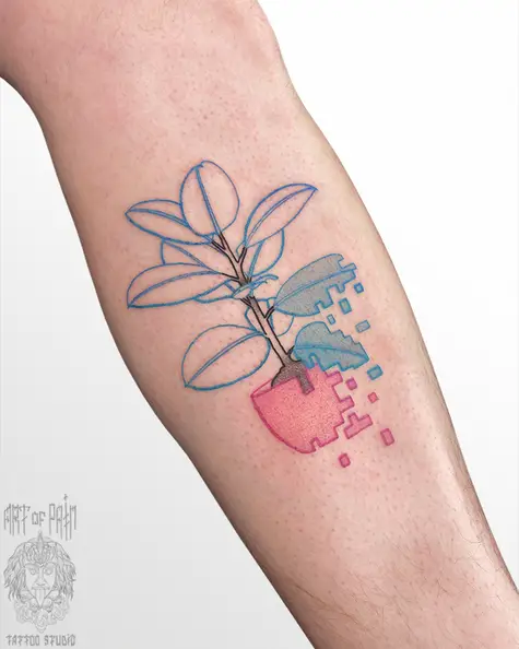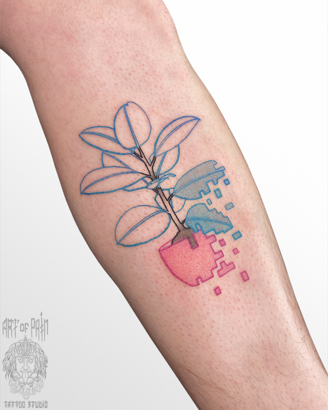 Татуировка женская графика на предплечье растение 7513