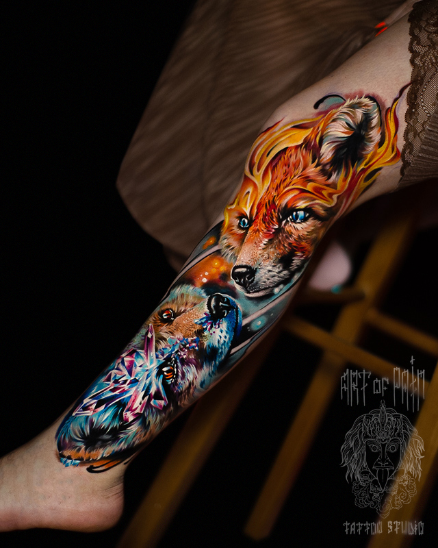 Татуировка женская реализм на ноге лисы (Дмитрий Шейб) 7522