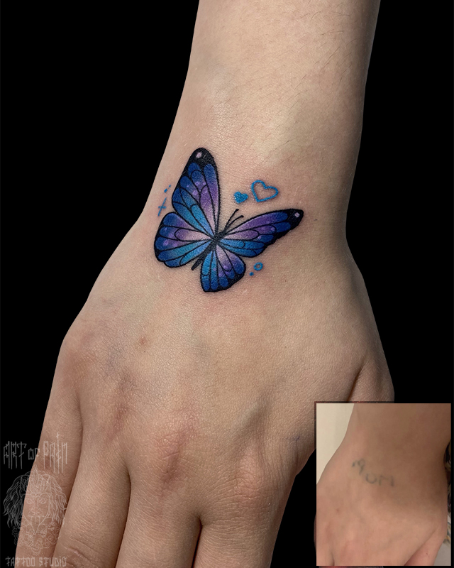 Татуировка женская графика на запястье бабочка кавер (Евгения Шмидт) 7547