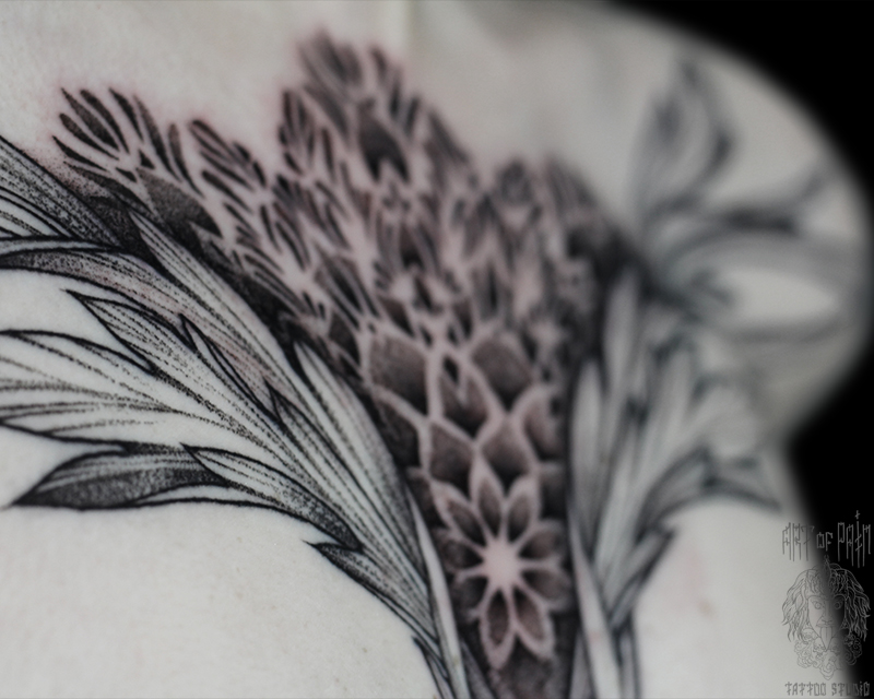 Татуировка женская графика и орнаментал на груди мандала и растение (фрагмент) (Надежда Полякова) 7564