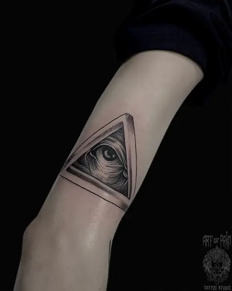 Татуировка женская графика на руке Масонский глаз 7596