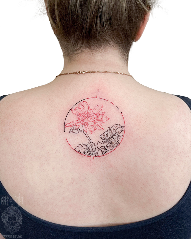 Татуировка женская графика на спине цветок 7606