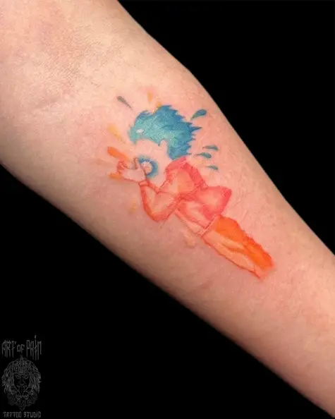 Татуировка женская акварель на руке Хаул и Кальцифер 7639