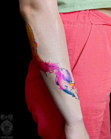 Татуировка женская акварель на предплечье лиса 7645