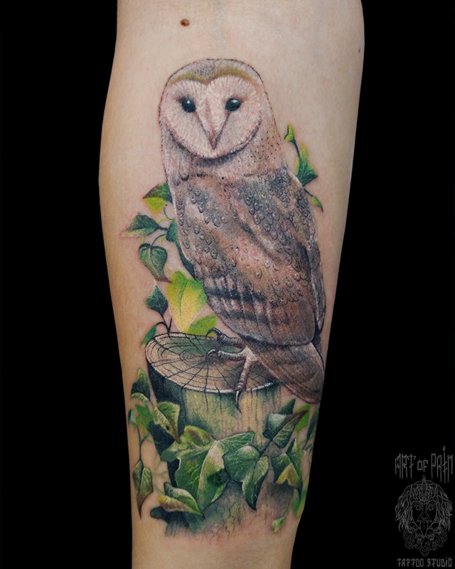 Татуировка женская реализм на предплечье сова (Анастасия Родина) 7670