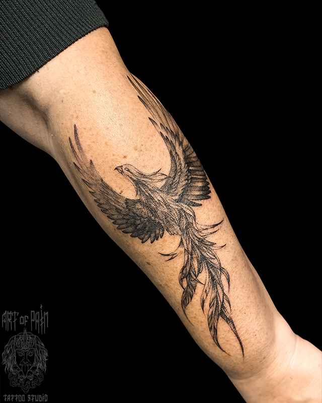 Татуировка женская графика на предплечье феникс 7715