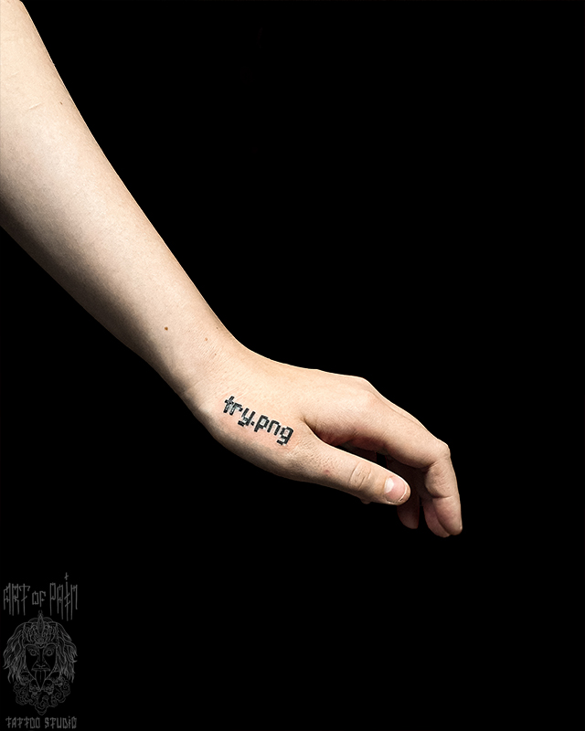 Татуировка женская графика на кисти надпись 7717