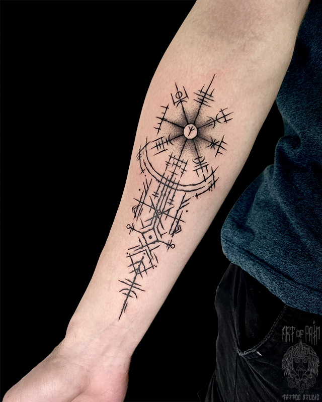 Татуировка женская графика на предплечье скандинавский узор с рунами (Евгения Шмидт) 7775