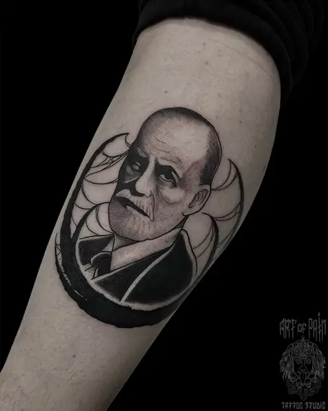 Татуировка женская графика на голени Фрейд 7788