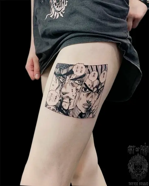 Татуировка женская графика на бедре аниме 7842