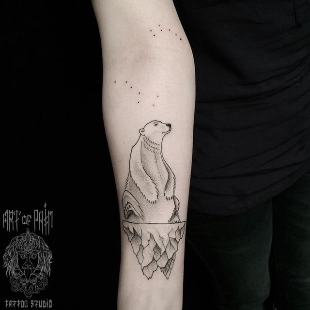Татуировка женская графика на предплечье белый медведь на льдине 785