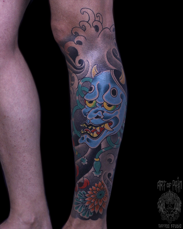 Татуировка женская япония на голени маска 7867