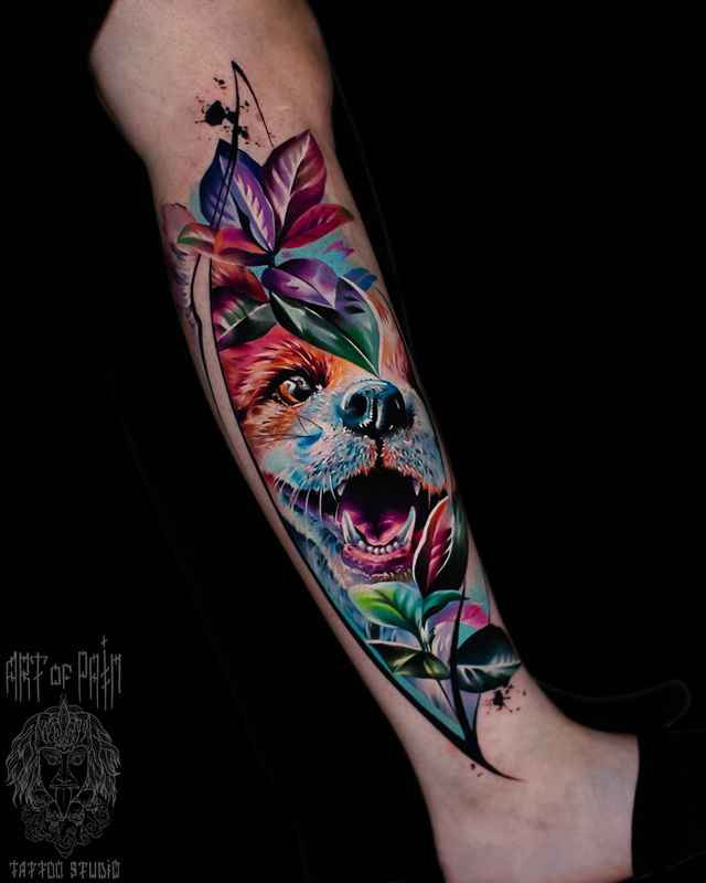 Татуировка женская реализм на голени лиса (Дмитрий Шейб) 7869