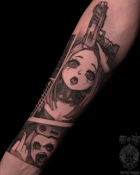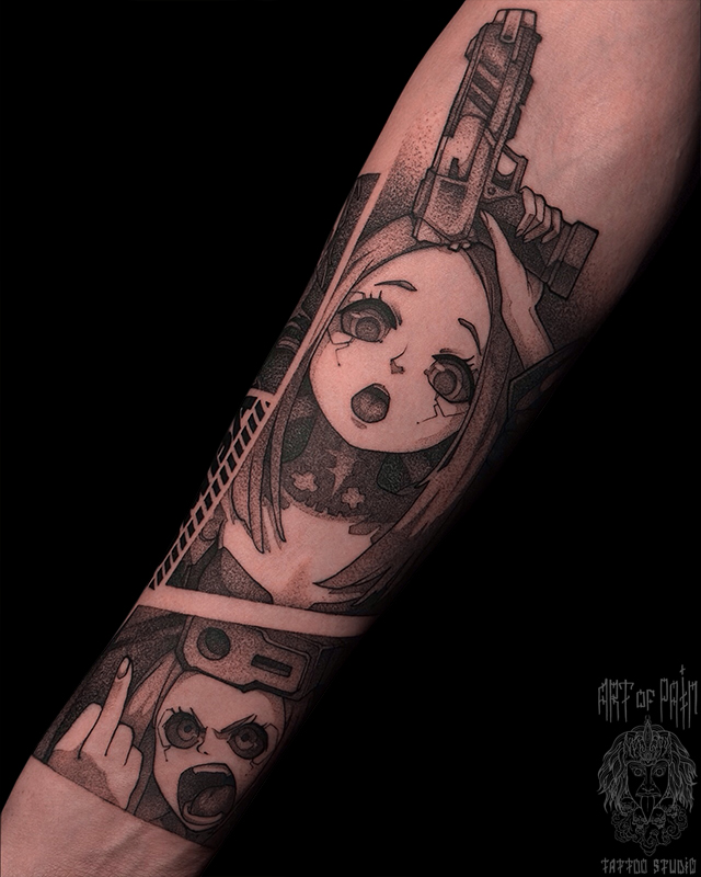 Татуировка женская графика на предплечье аниме (Денис Марченко) 7916