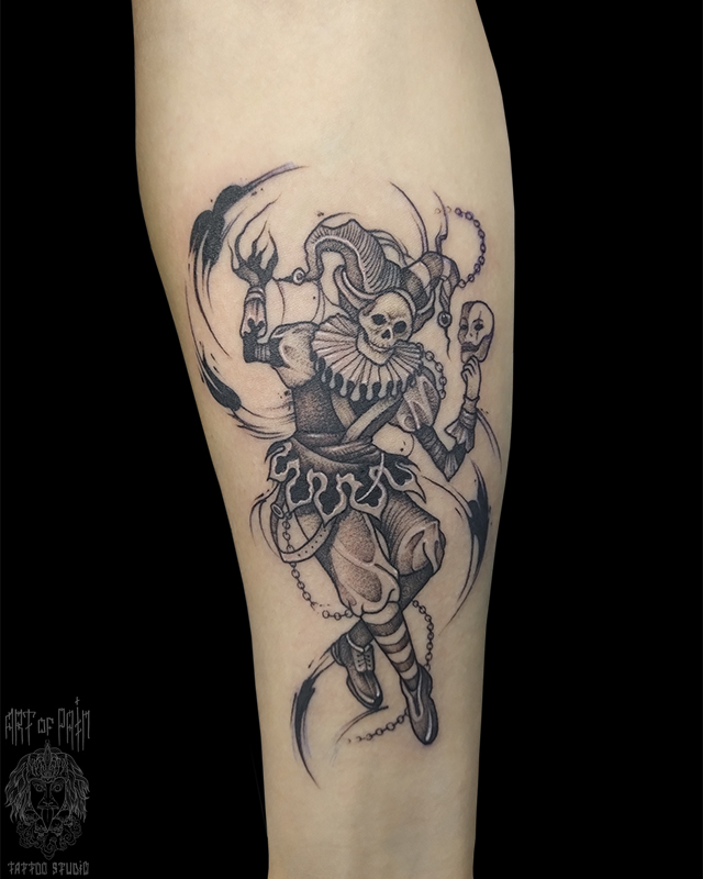 Татуировка женская графика на предплечье шут (Анастасия Родина) 7935