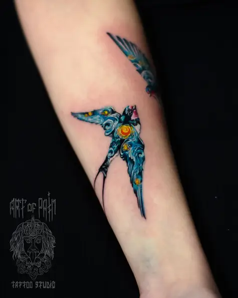 Татуировка женская реализм на предплечье ласточки (Дмитрий Шейб) 7962