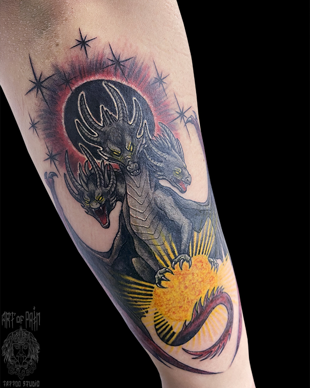 Татуировка женская графика на предплечье дракон (Анастасия Родина) 8000
