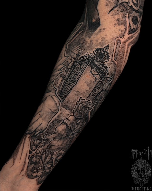 Татуировка женская нео-трад на предплечье Алиса в стране чудес (Денис Марченко) 8075