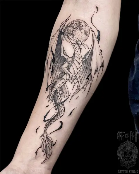 Татуировка женская графика на предплечье дракон (Мария Котова) 8097