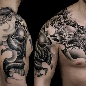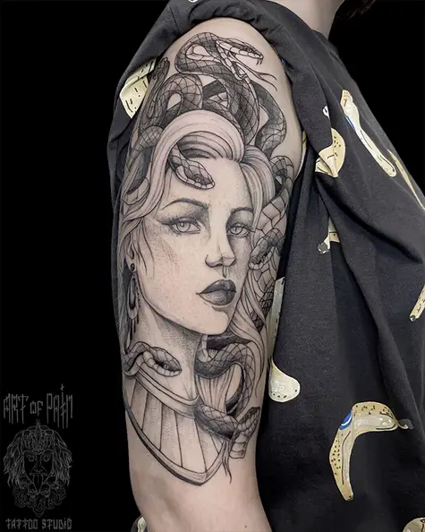 Татуировка женская графика на плече Горогона Медуза (Мария Котова) 8132