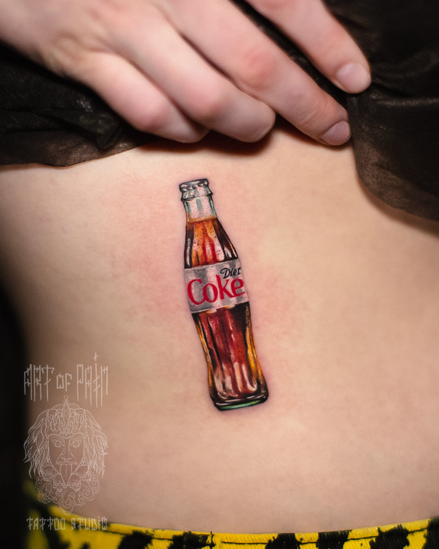 Татуировка женская реализм на животе Кока-Кола (Дмитрий Шейб) 8138