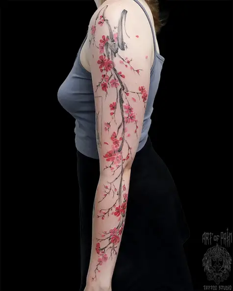 Татуировка женская графика тату-рукав сакура (Анастасия Родина) 8140