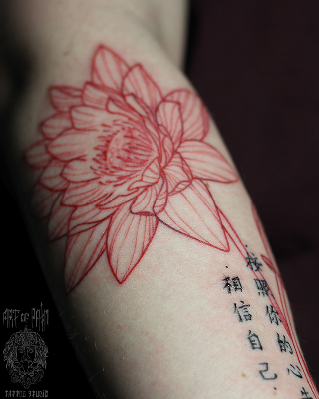Татуировка женская графика на предплечье цветок и надпись (Надежда Полякова) 8166