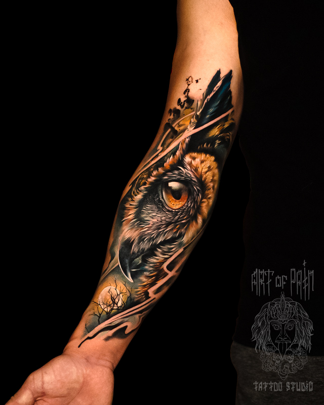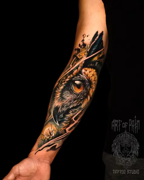 Татуировка женская реализм на предплечье сова (Дмитрий Шейб) 8197