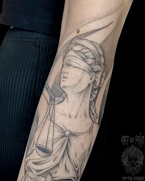 Татуировка женская графика на предплечье Фемида (Мария Котова) 8216