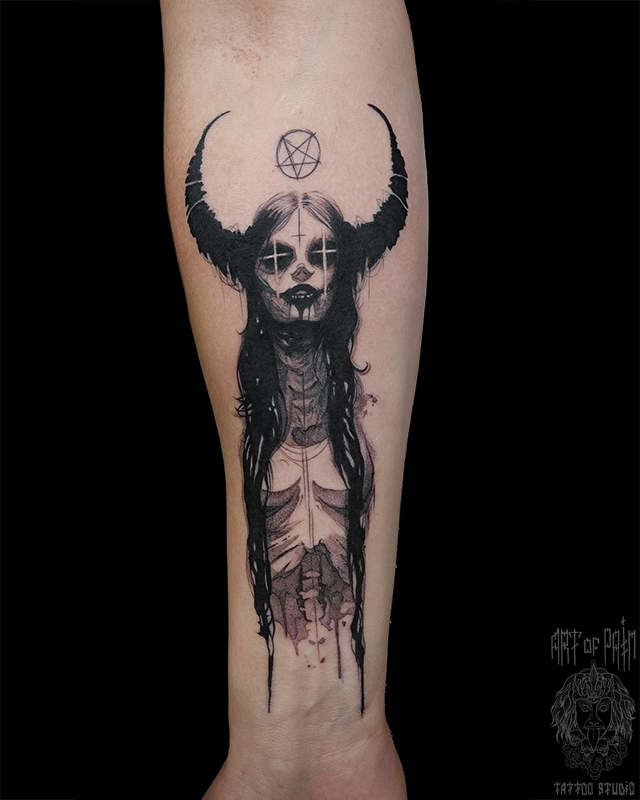 Татуировка женская графика на предплечье демон (Анастасия Родина) 8230